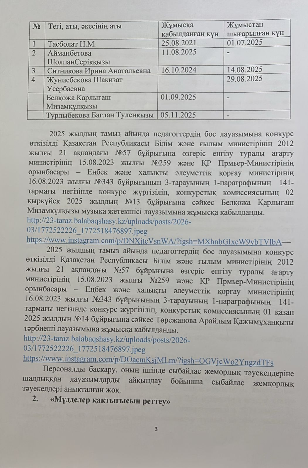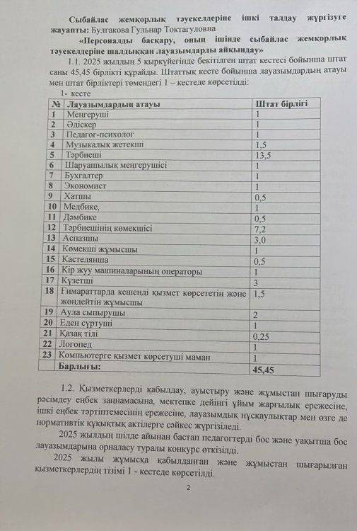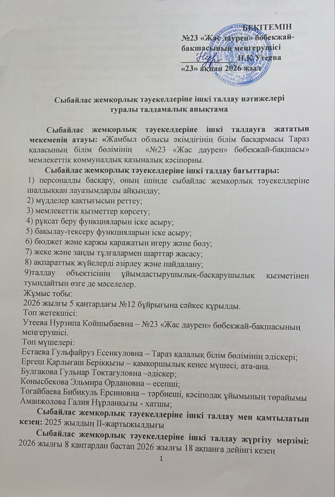 Сыбайлас жемқорлық тәуекелдеріне ішкі талдау нәтижелері туралыталдамалық анықтама » №23 "Жас даурен"