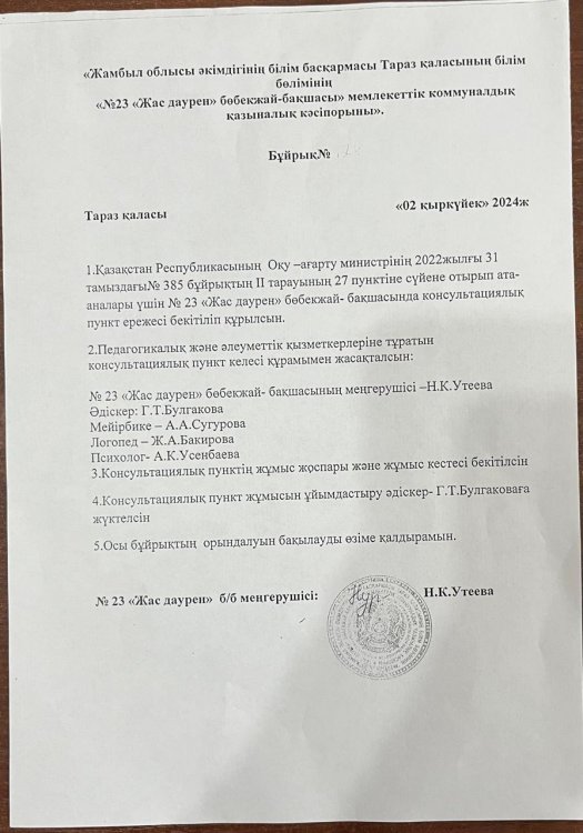 Консультациялық пунктің құрамы және оны сайлау туралы » №23 "Жас даурен"