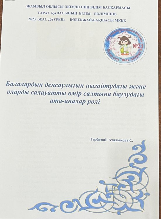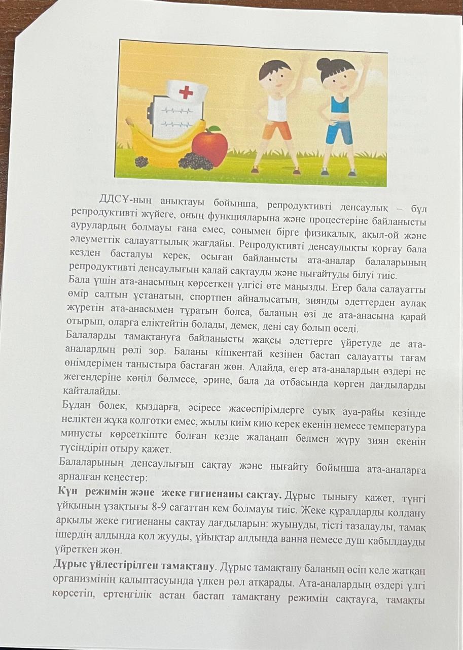 10 октябрь 2024 0 1 2 3 4 5 "Балалардың денсаулығын нығайтудағы және оларды салауатты өмір салтына баулудағы ата-анлардың рөлі" Кеңес.