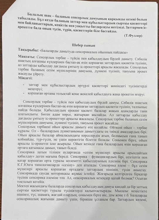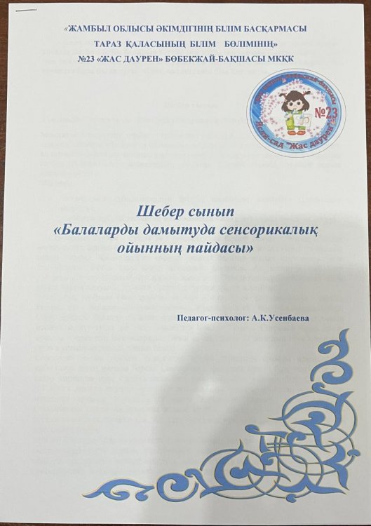 Балаларды дамытуда сенсорикалық ойынның пайдасы. Шебер сынып » №23 "Жас даурен"