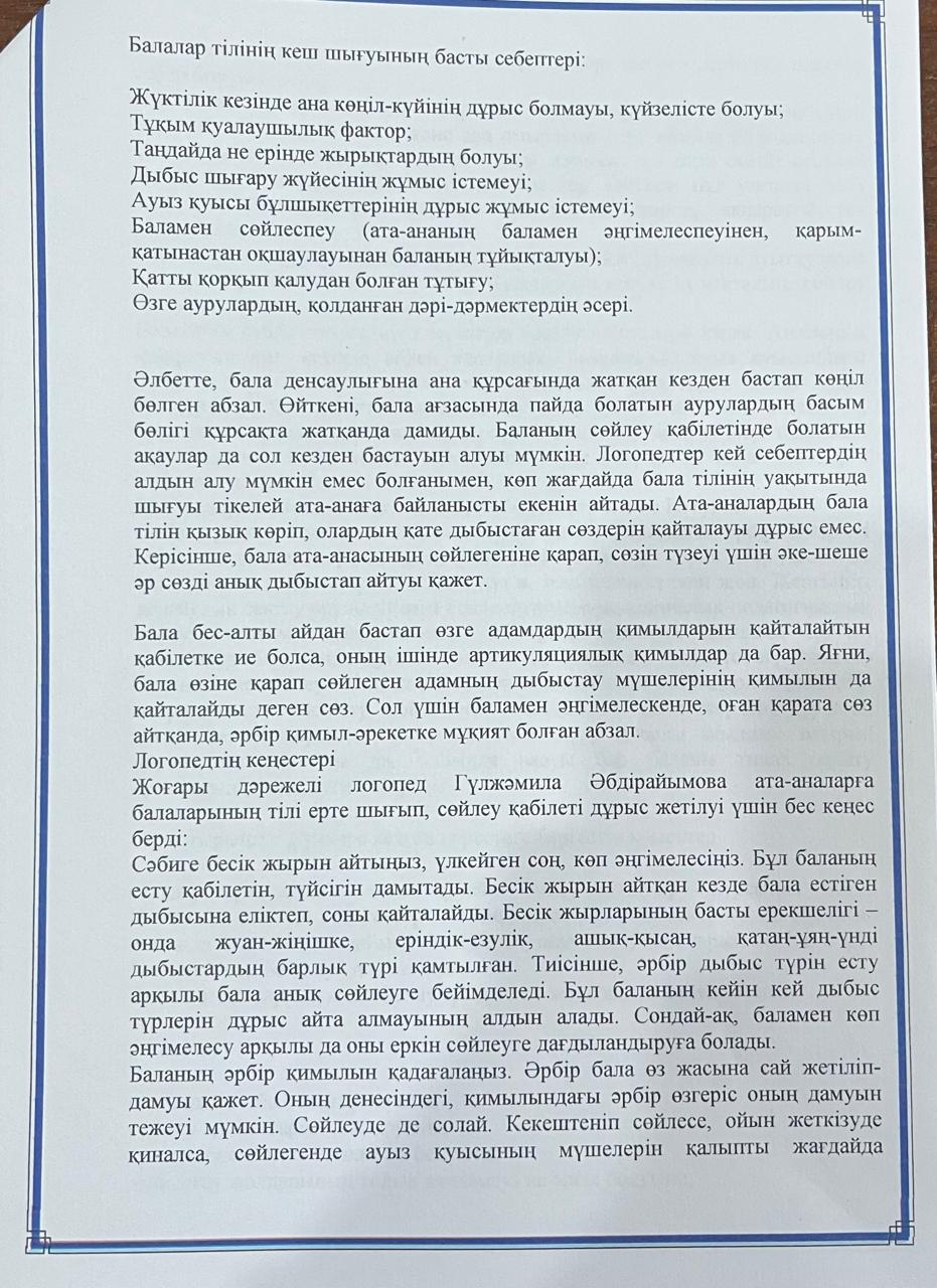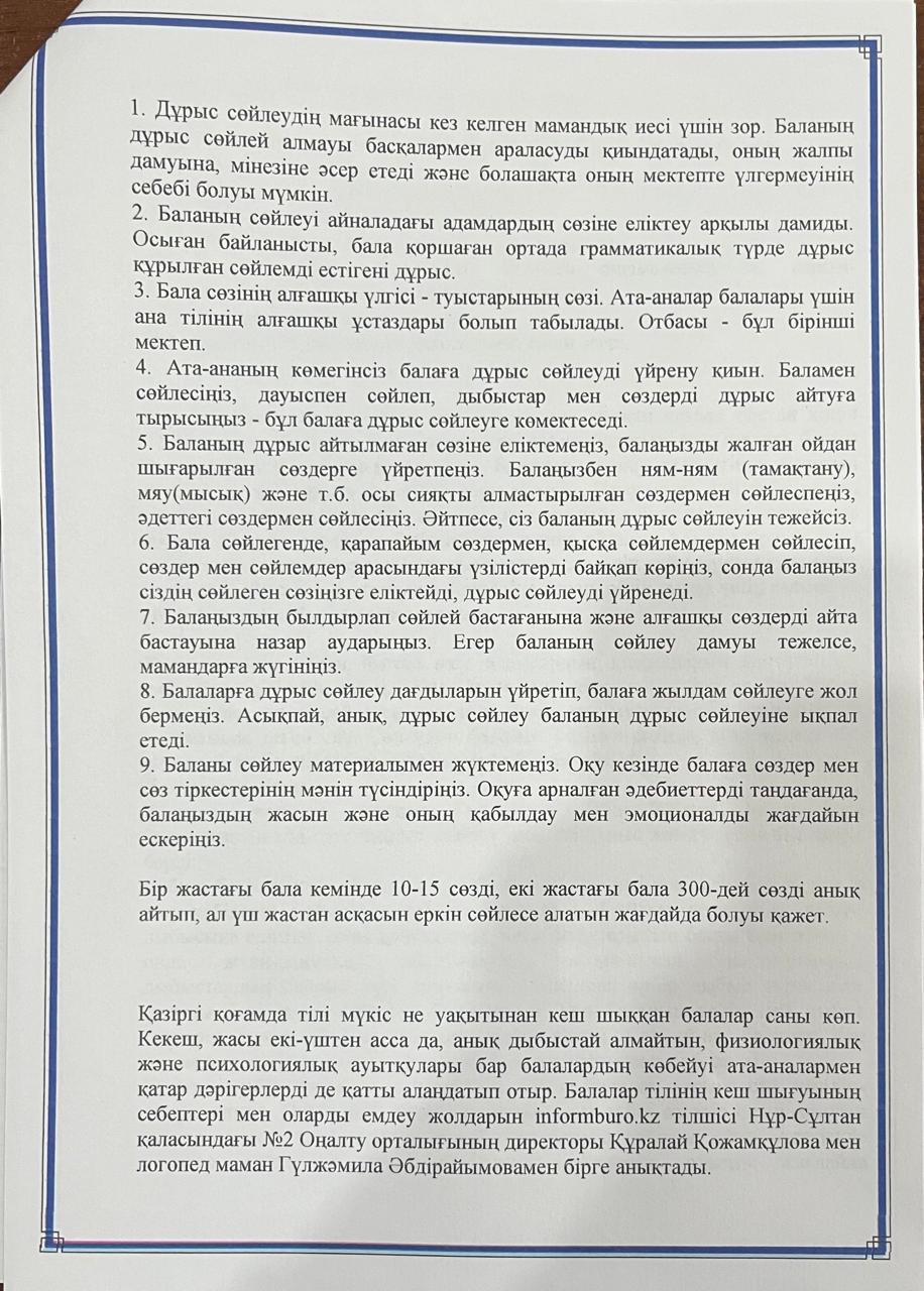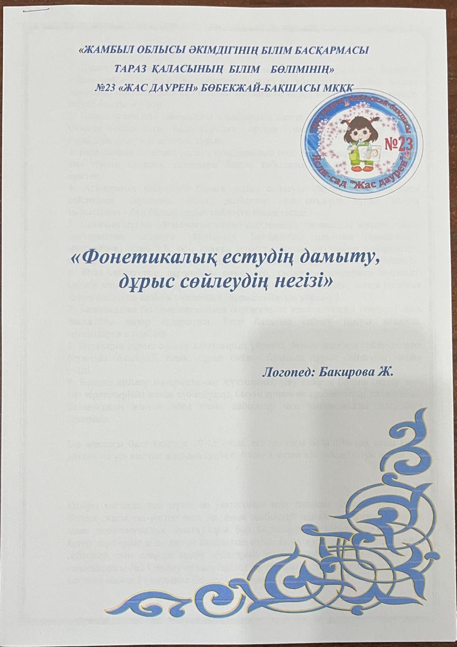 "Фонетикалық естуді дамыту, дұрыс сөйлеудің негізі" Кеңес. » №23 "Жас даурен"