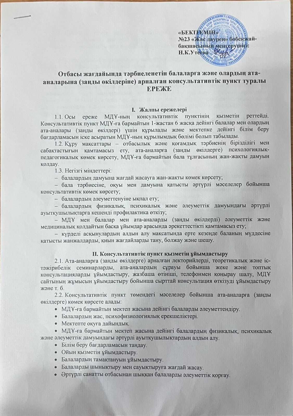 29 август 2025 0 1 2 3 4 5 Отбасы жағдайында тәрбиеленетін балаларға және олардың ата-аналарына арналған консультативтік пункт туралы ЕРЕЖЕ