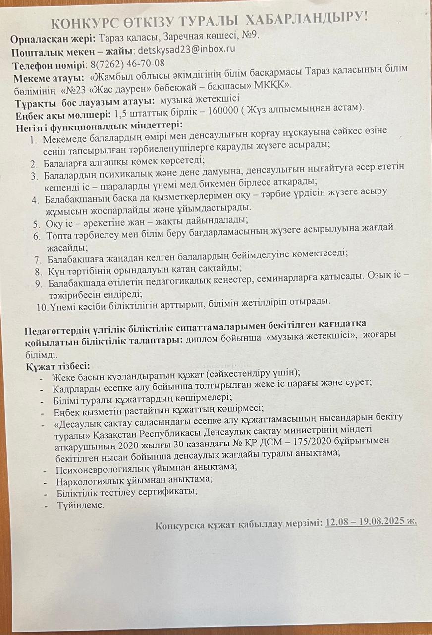 КОНКУРС ӨТКІЗУ ТУРАЛЫ ХАБАРЛАНДЫРУ! » №23 "Жас даурен"