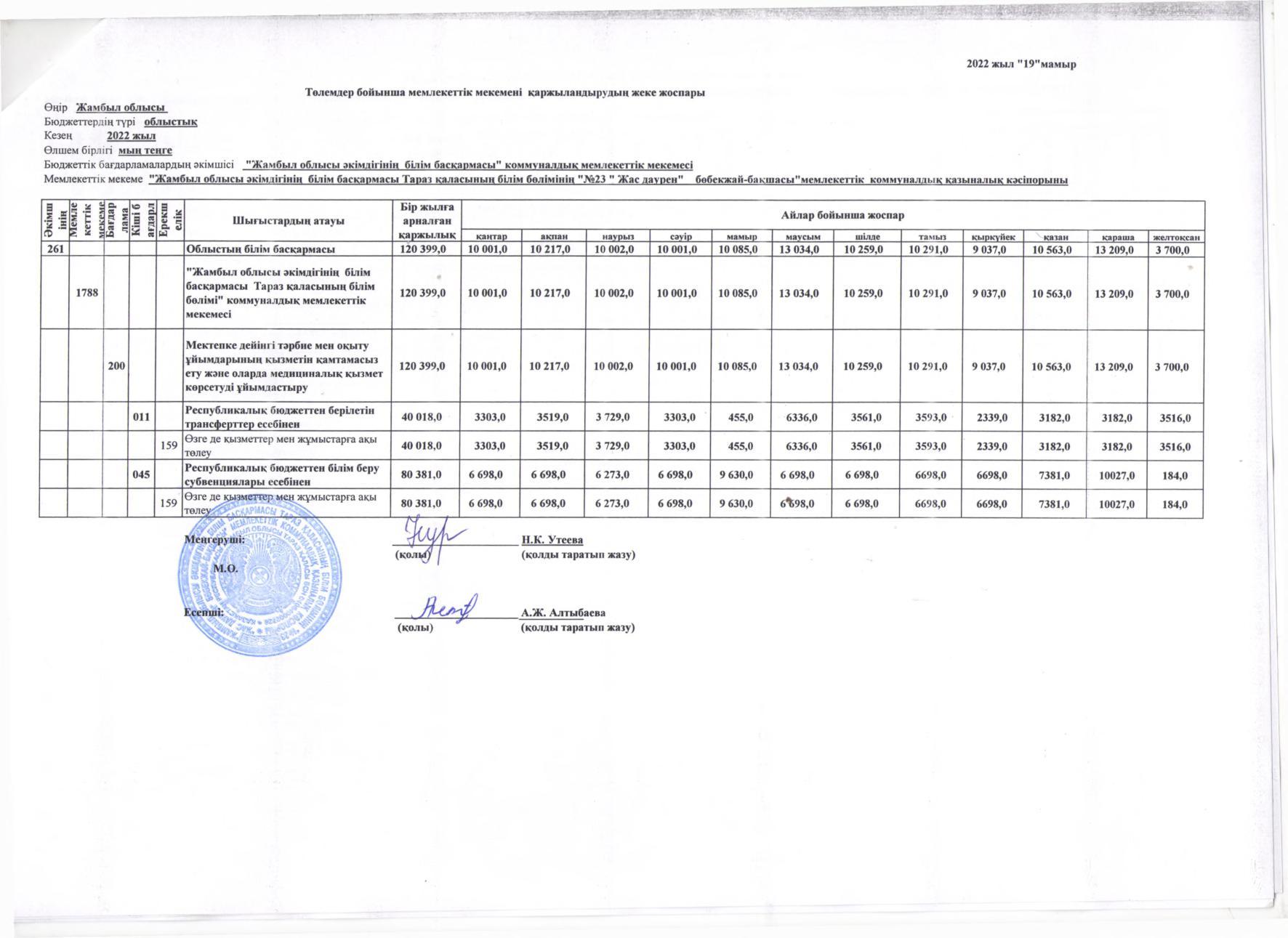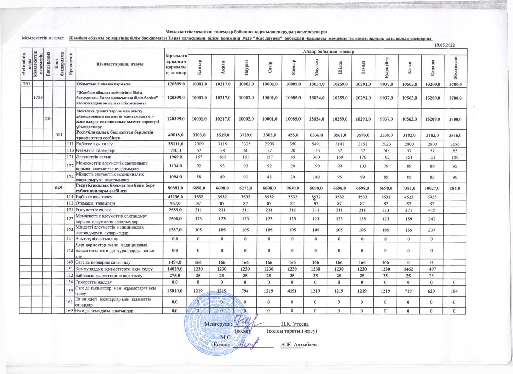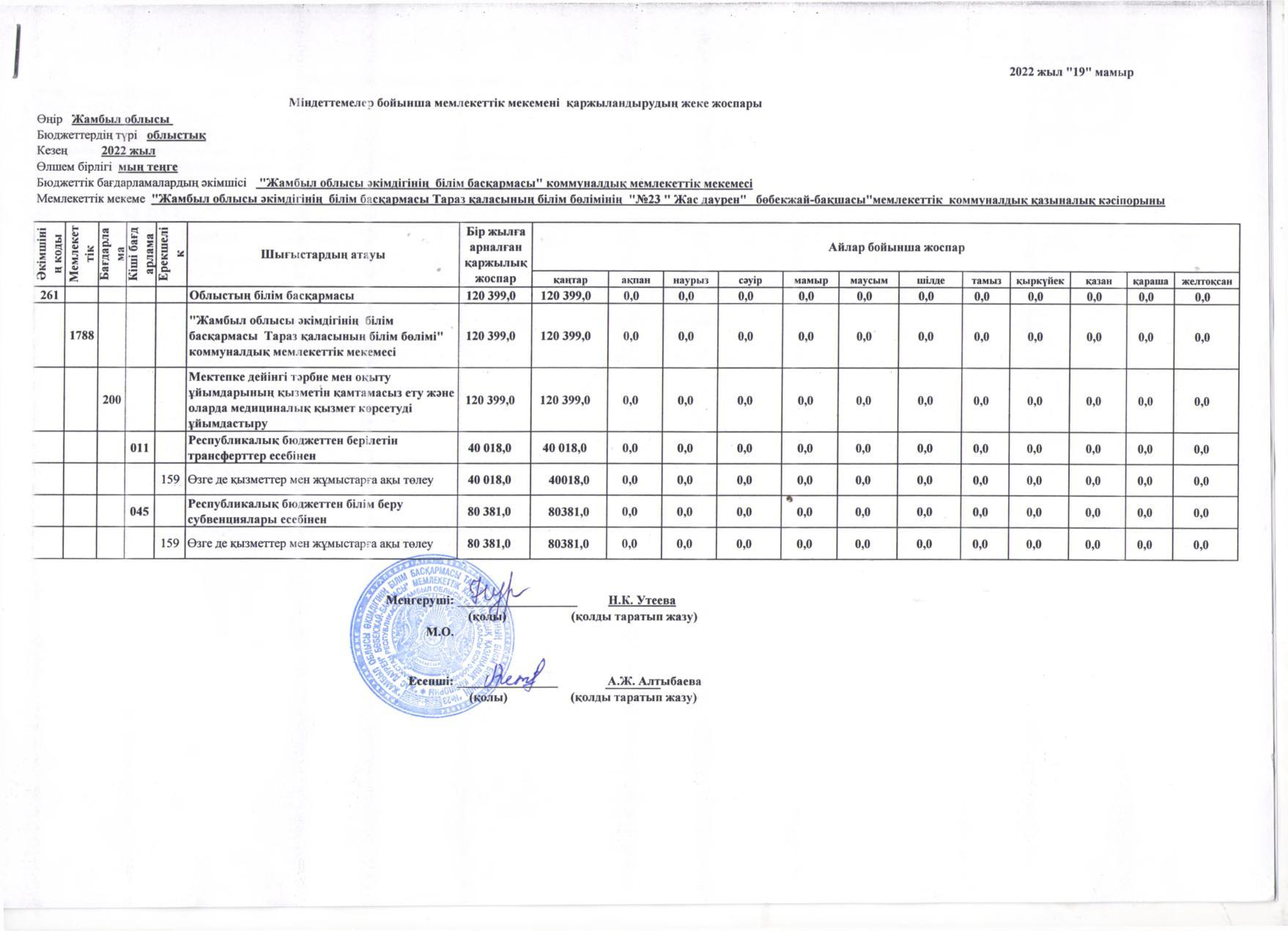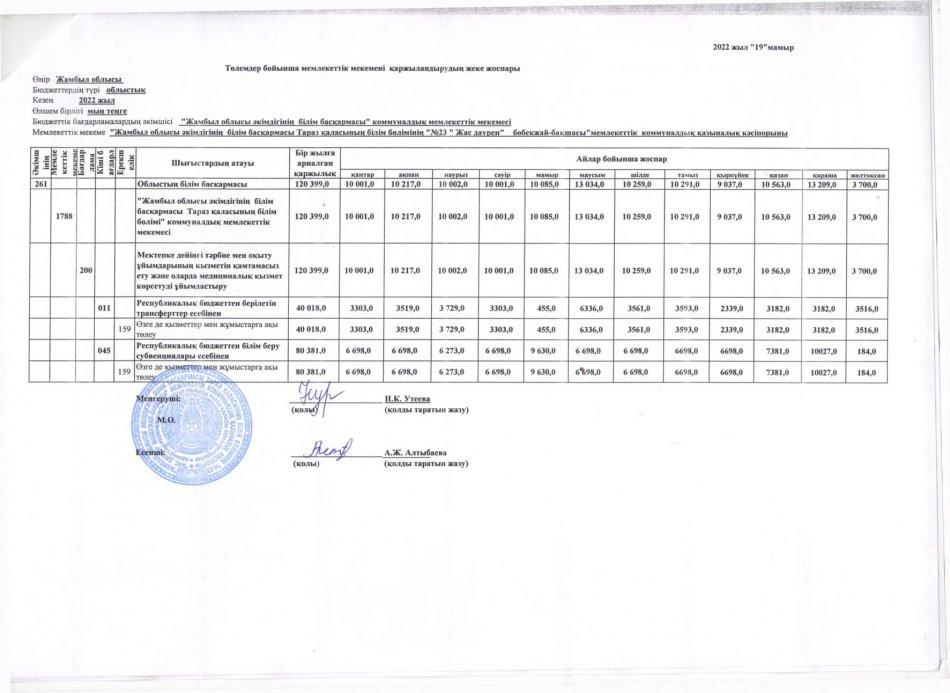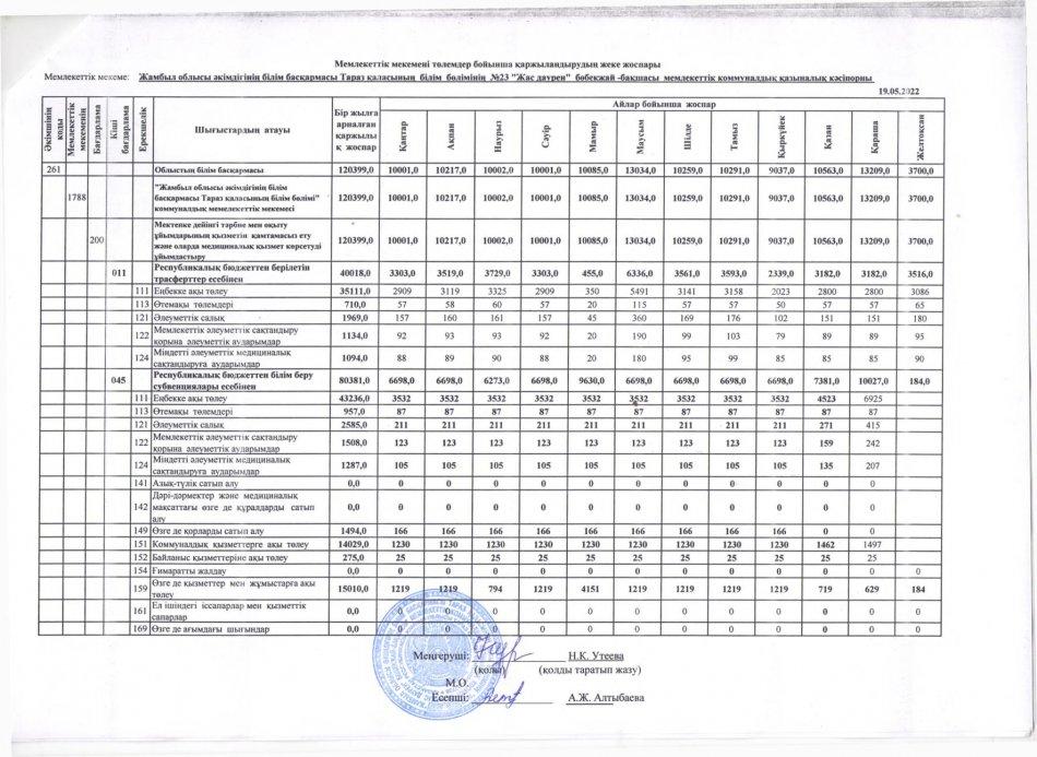 » » » Жеке қаржыландыру жоспары 19.05.2022