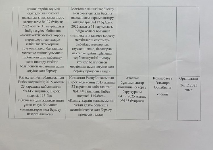 Сыбайлас жемқорлықт тәуекелдерін ішкіталдау нәтижелері бойынша анықталған сыбайлас жемқорлық құқық бұзушылықтар жасауға ықпал ететін себептер мен жағдайларды жою жөніндегі іс-шаралар жоспары » №23 "Жас даурен"